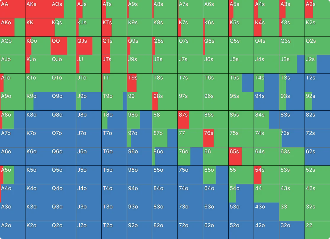 Общий фолд% = Игрок1 фолд% × Игрок2 фолд% × Игрок3 фолд% и т.д.…