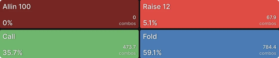 BTN открывается, SB коллирует, BB коллирует. Мы будем использовать диапазоны из GTO Wizard. Средняя нагрузка на защиту составляет 25% на игрока, столкнувшегося с таким овербетом (по сравнению с 44% в хедз-ап поте). Как правило, SB будет защищать меньше, чем BB, но давайте упростим и заставим обоих игроков коллировать со всей верхней четвертью своего диапазона колла на префлопе. Напоминаем, что на флопе .