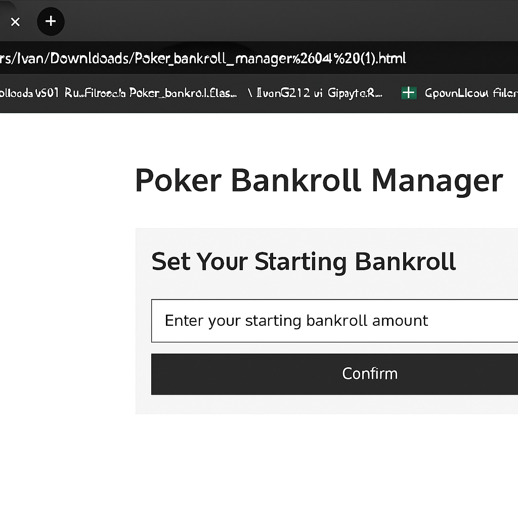 - На первом экране вы увидите простое окно для ввода начальной суммы банкролла. Введите сумму, с которой начинаете, например 20$, и нажмите «Подтвердить».