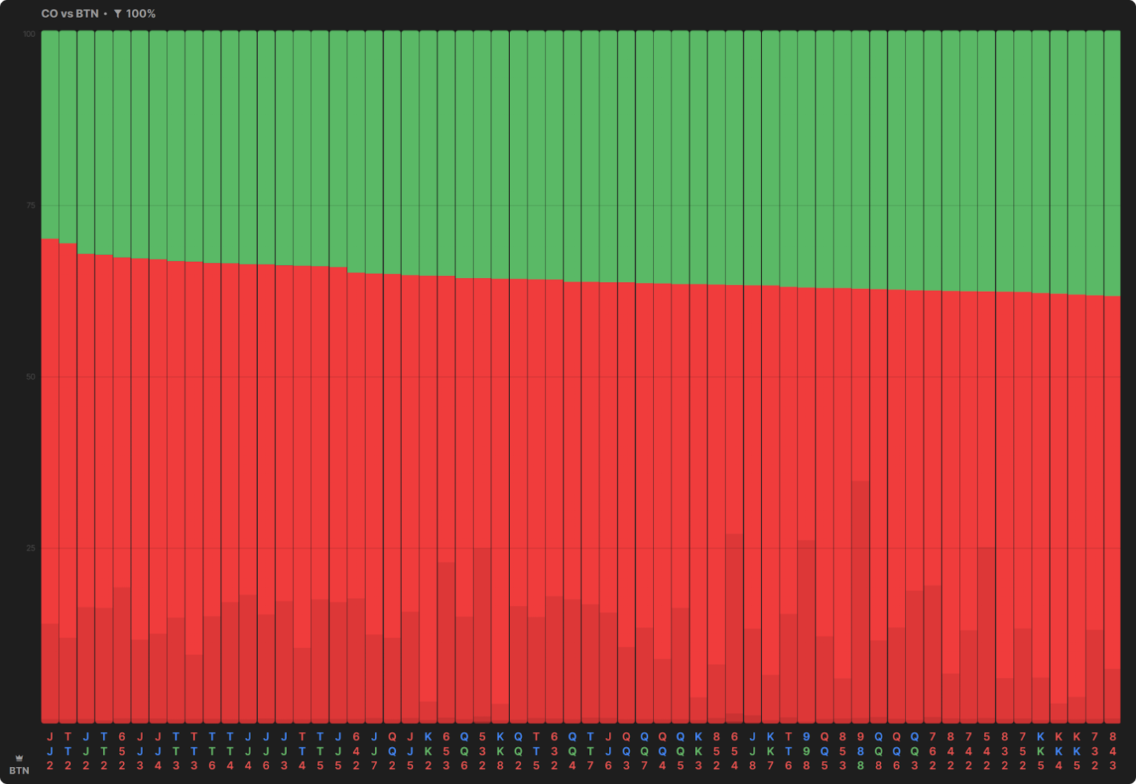 После чека CO, BTN ставит больше половины своего диапазона.