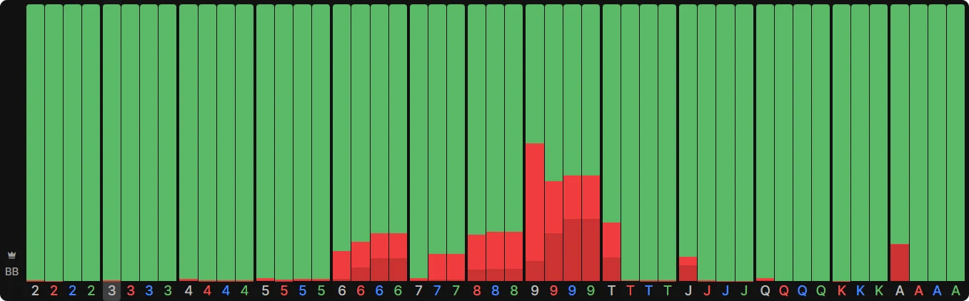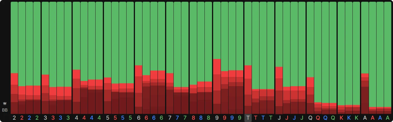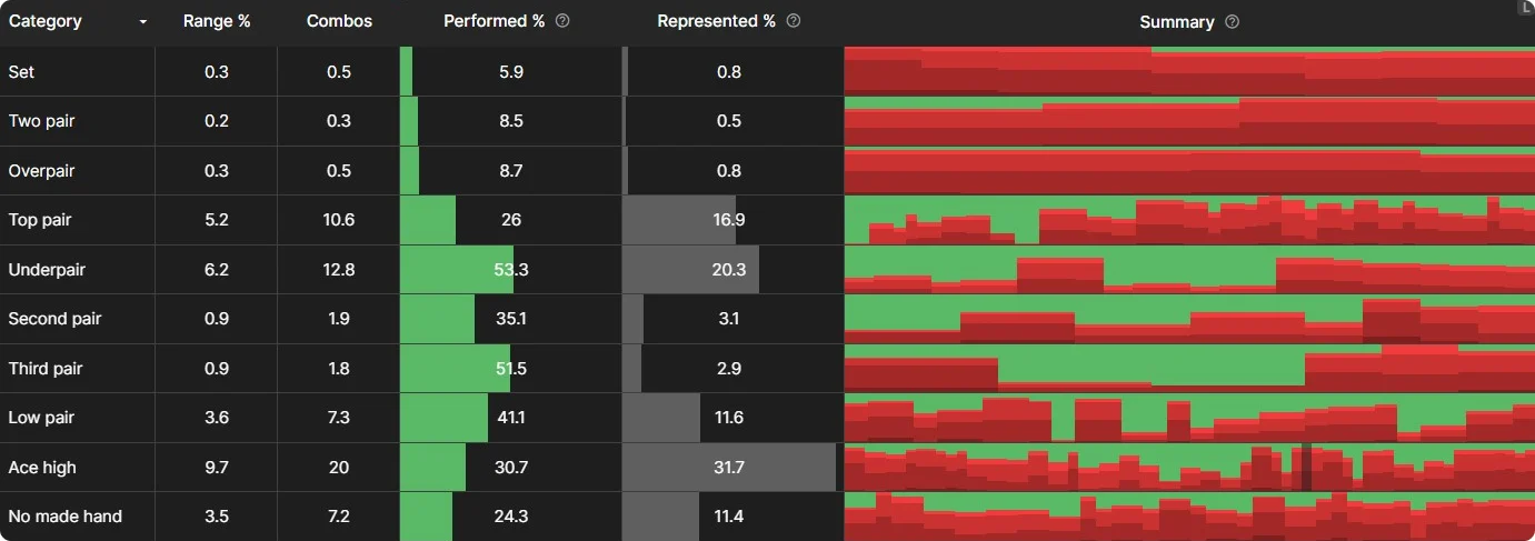 Вот отчет после чека флопа, на этот раз показывающий стратегию с точки зрения BB: