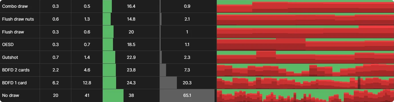 Вот разбивка по видам дро в диапазоне чека флопа UTG: