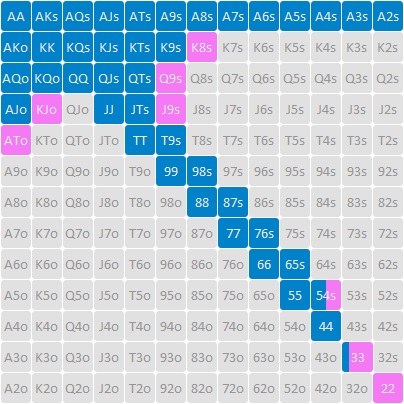 Дополнительные руки (плюс 7,4% — 98 комбинаций) — если играют тайтовые или слабые противники.