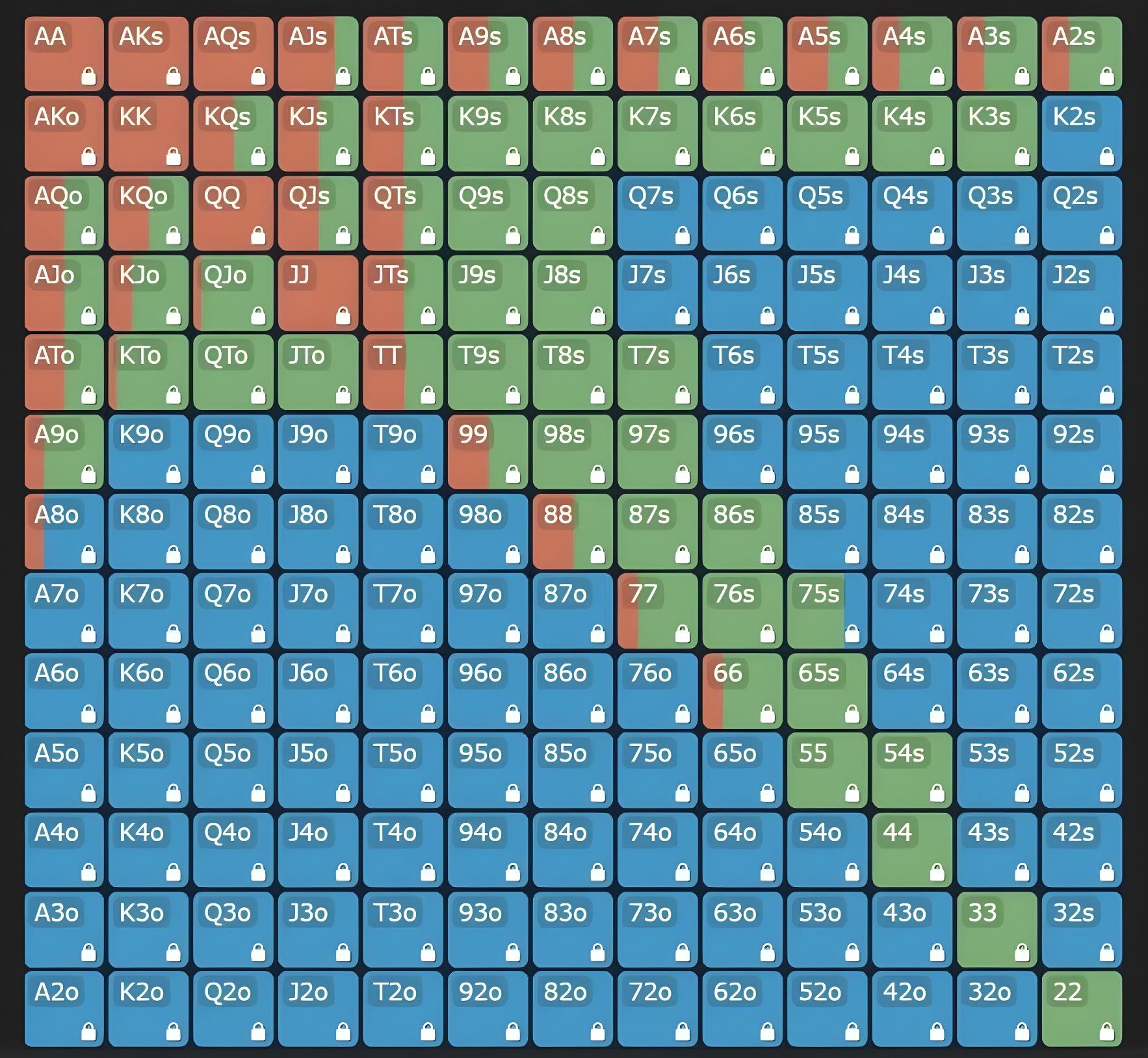 Если вы думаете: «Король-десятка разномастные и валет-семерка одномастные?! Игроки в моих лимитов никогда бы не стали 3-бетить с таким широким диапазоном!», то эта статья для вас. Следующим шагом будет блокировка узлов в этом диапазоне, чтобы реакция Баттона была более приближенной к реальности.