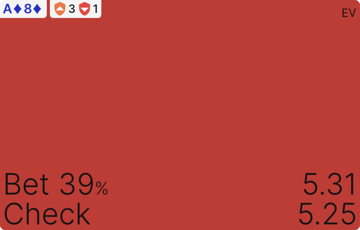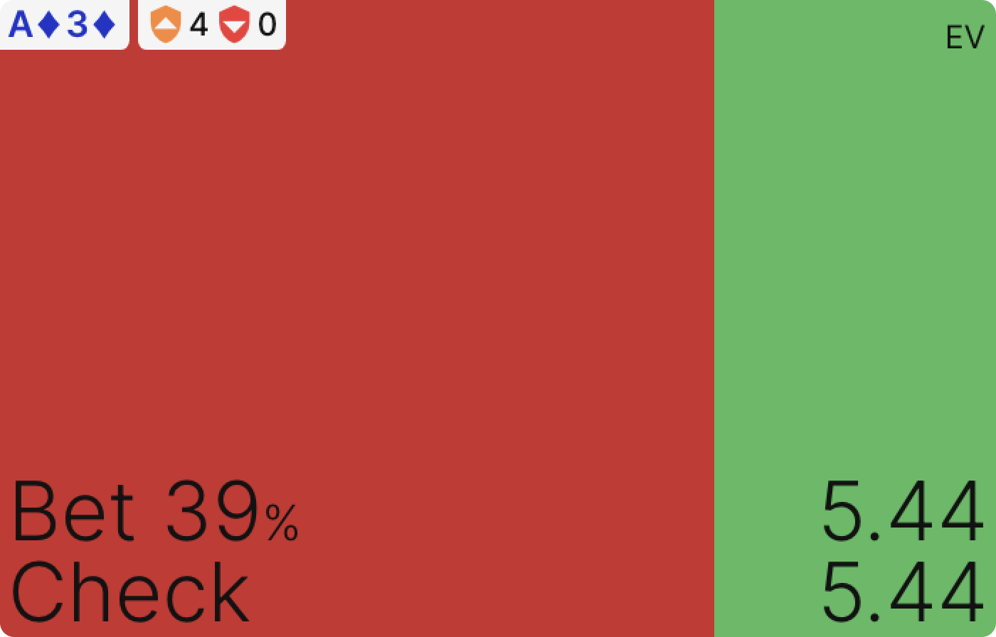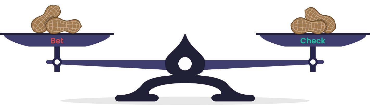EV одинаковое при ставке и чеке, поэтому солвер смешивает обе опции: