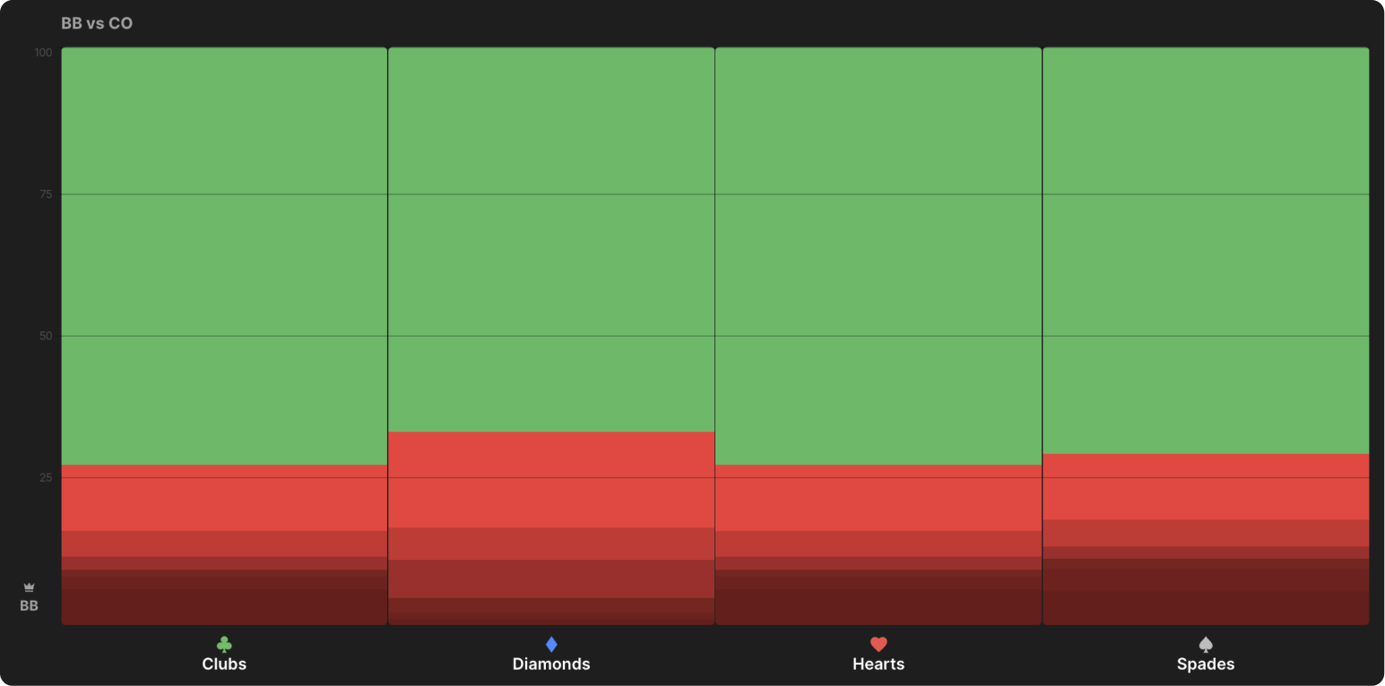 - Например, в глубине 100bb, когда CO против BB в сингл-рейз-поте на флопе