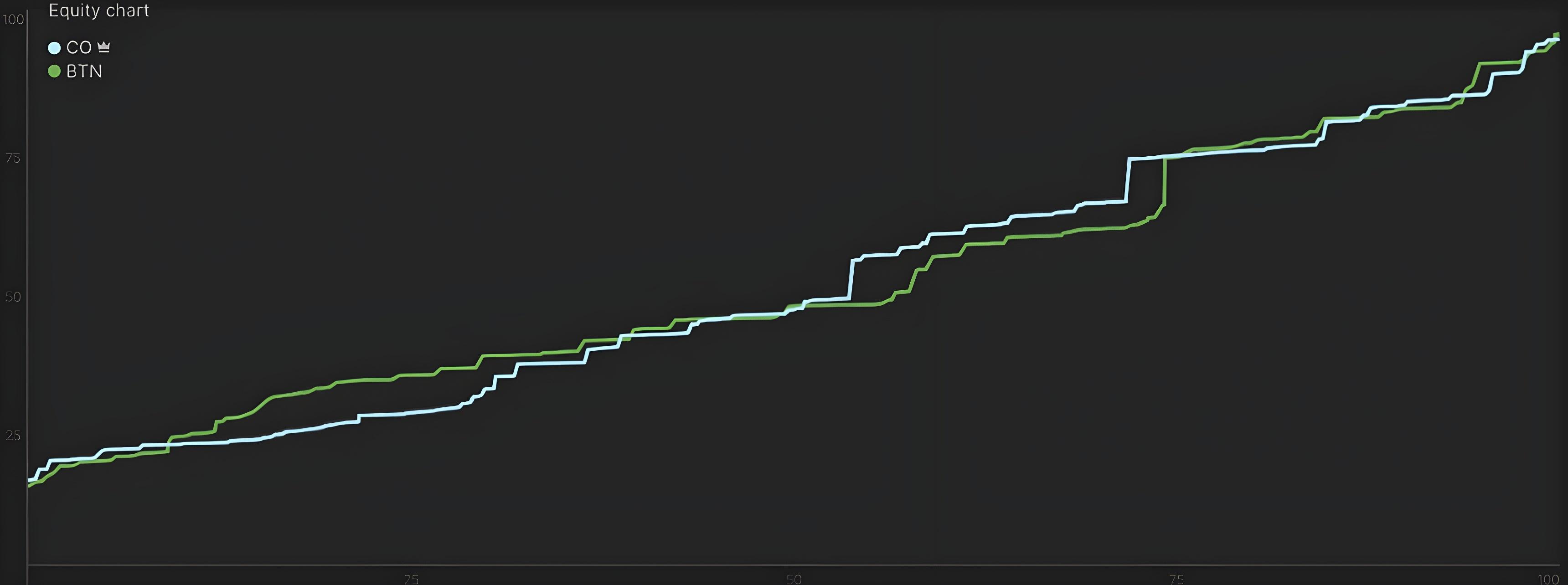 - Например, вот график распределения эквити CO против BB в сингл рейз банке в стеках 40bb в МТТ на флопе: