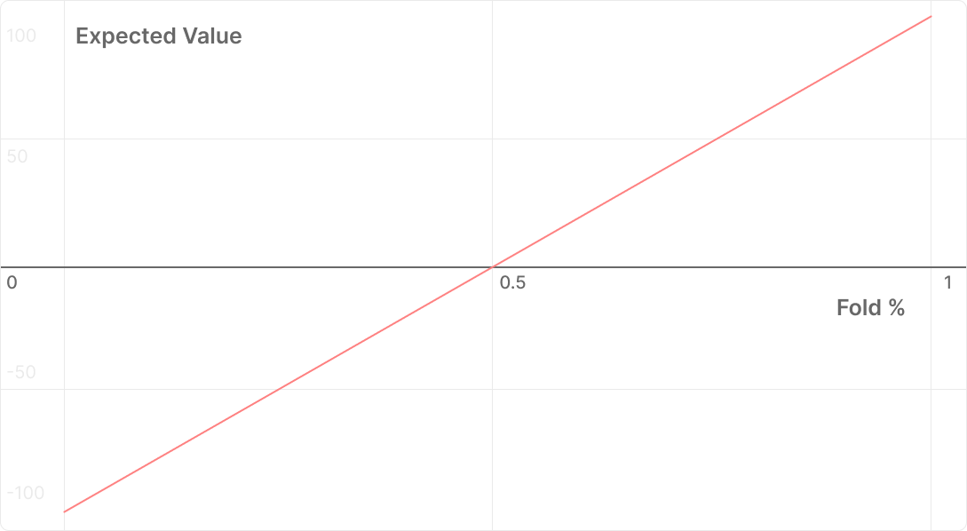 Таким образом, EV этого блефа составляет $10, потому что наш оппонент оверфолдит! Так как часто оппоненту нужно фолдить, чтобы наш блеф стоил 0 долларов?