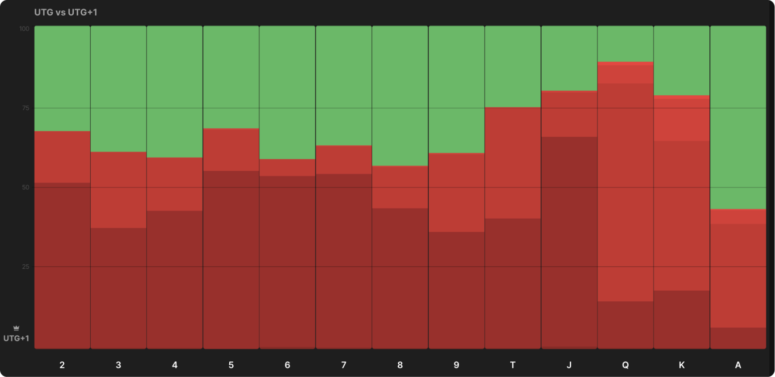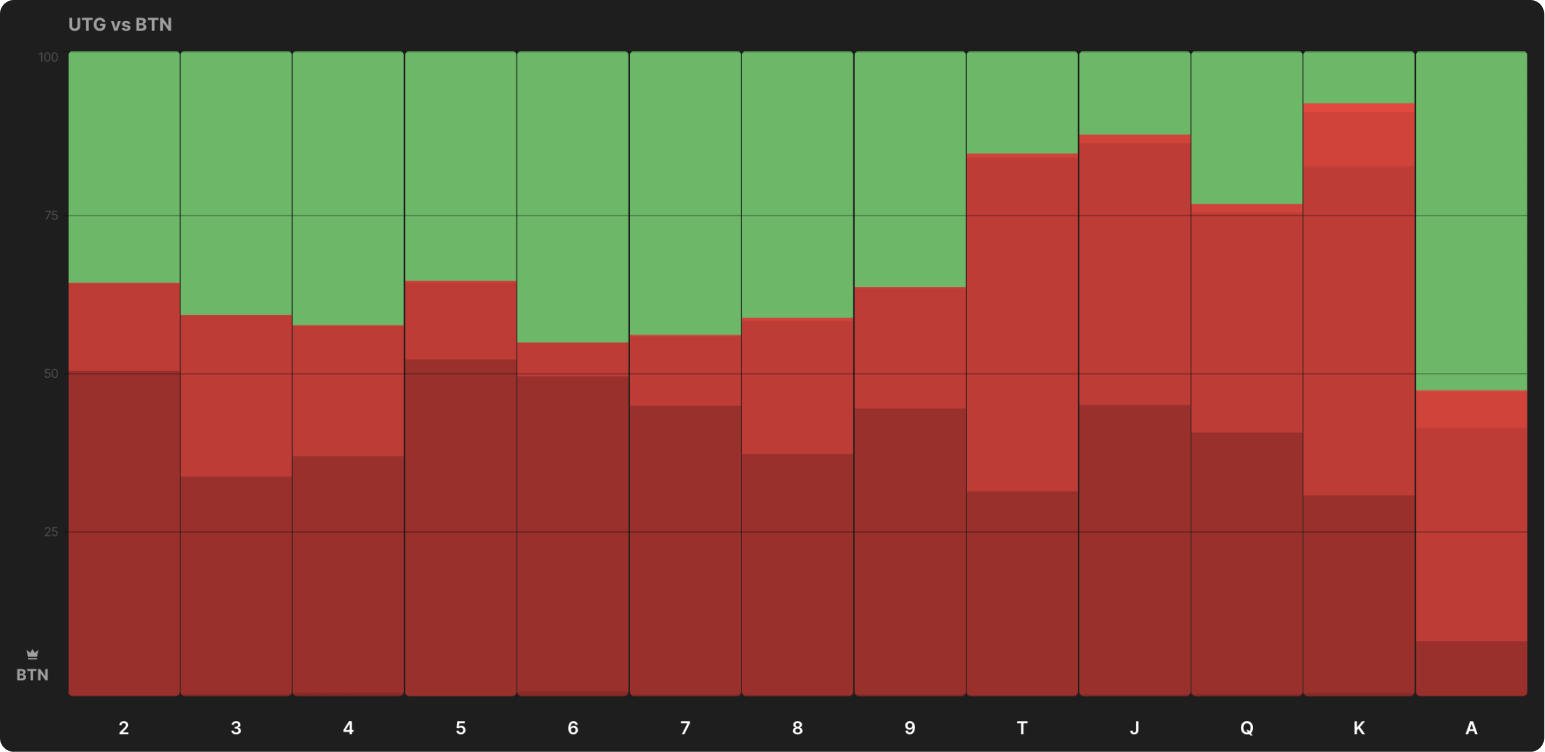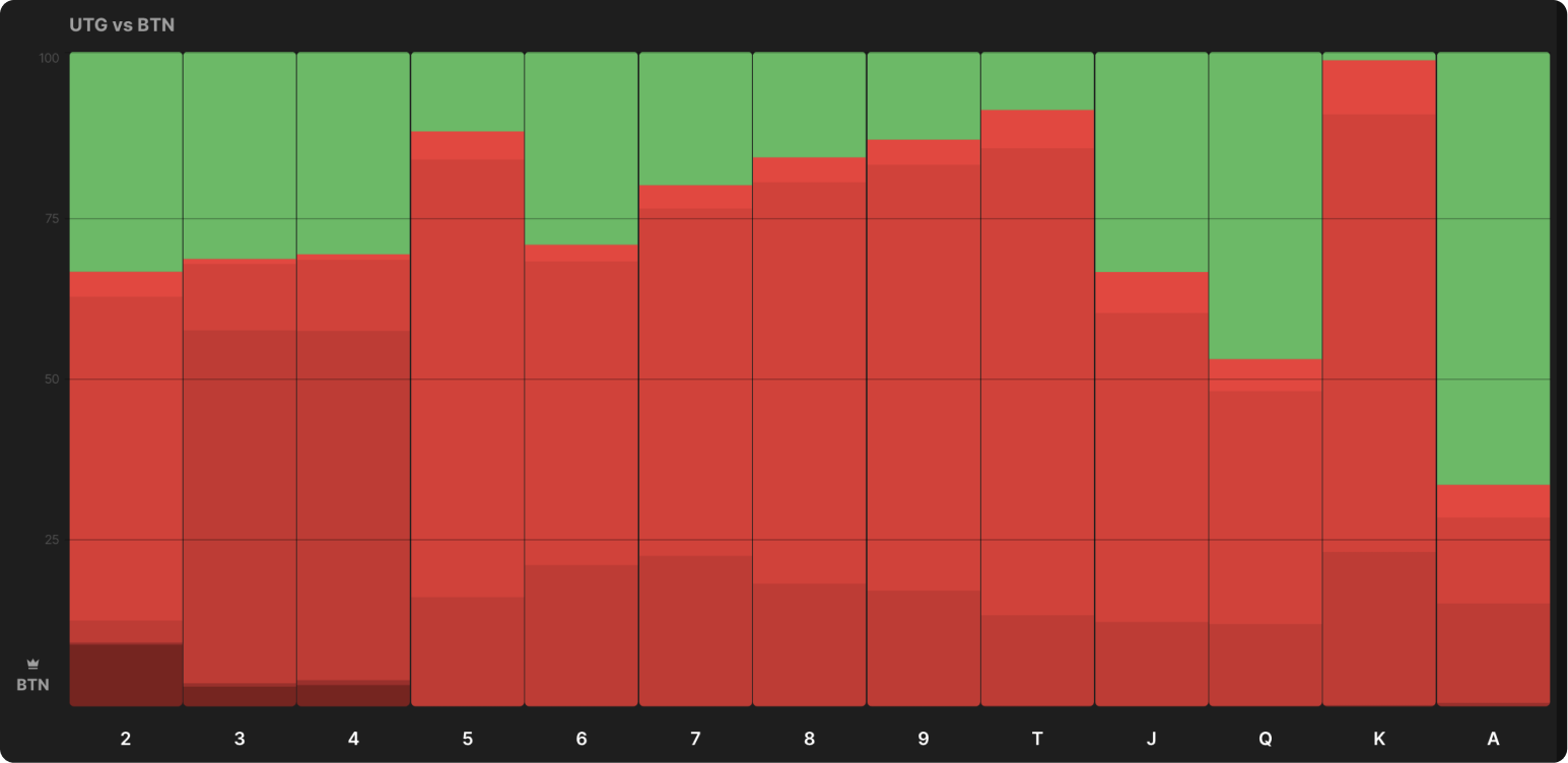 Стратегия 3-бетчика выглядит почти идентично, когда он на UTG1, а не BTN: