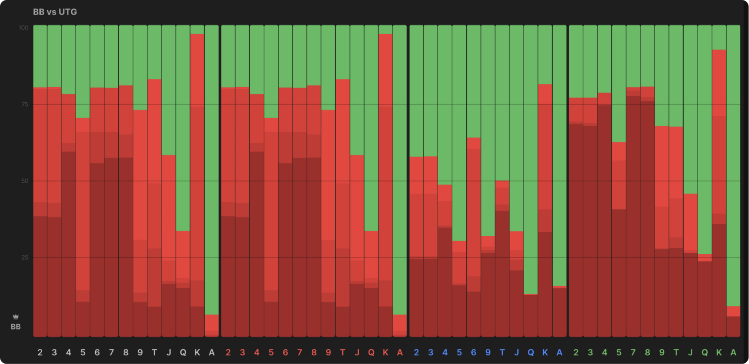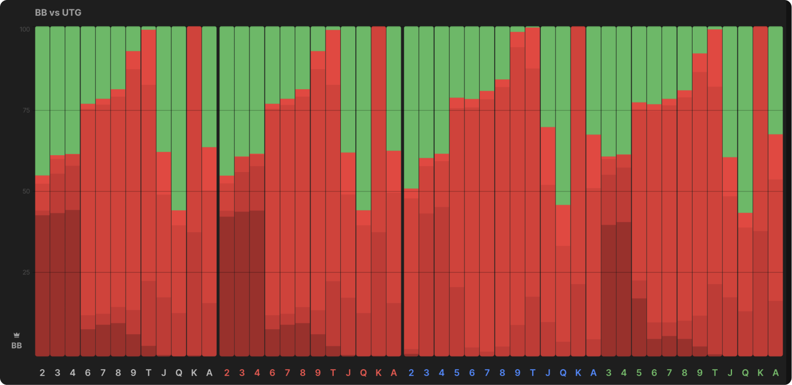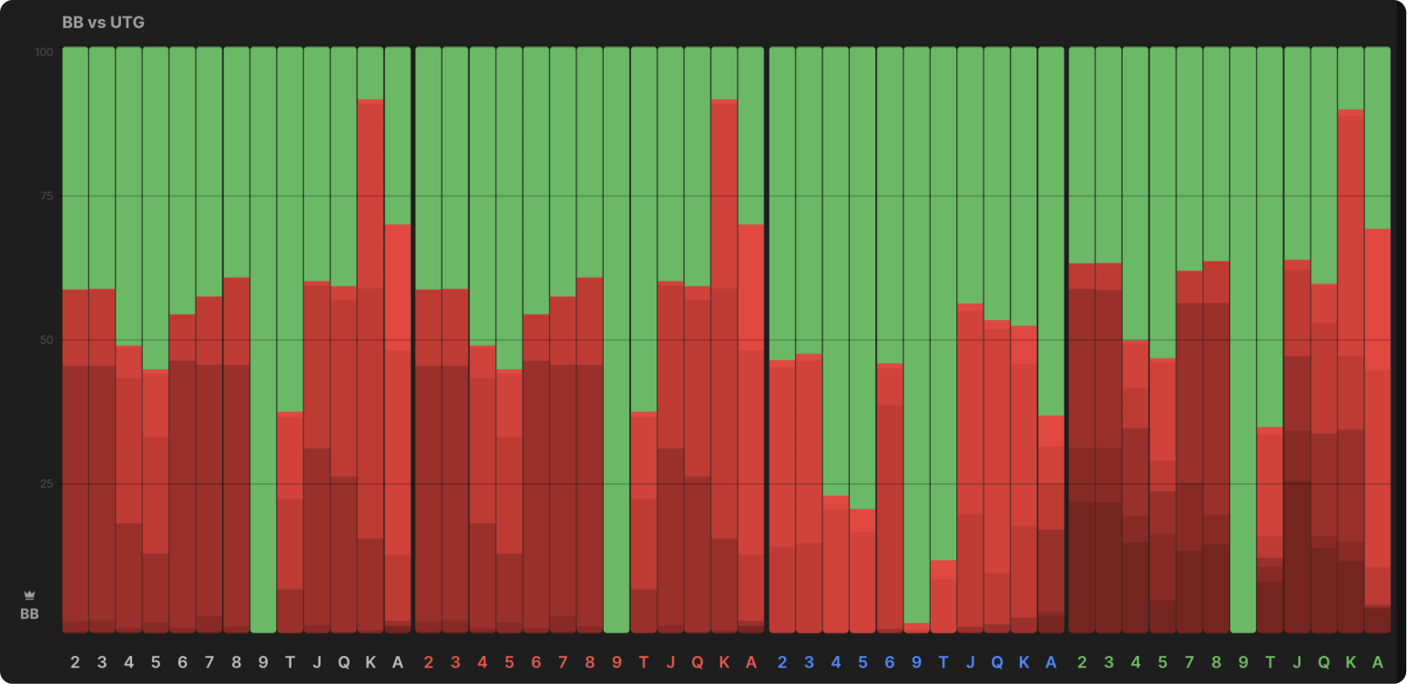 Вот стратегия BB против UTG в глубине 40bb: