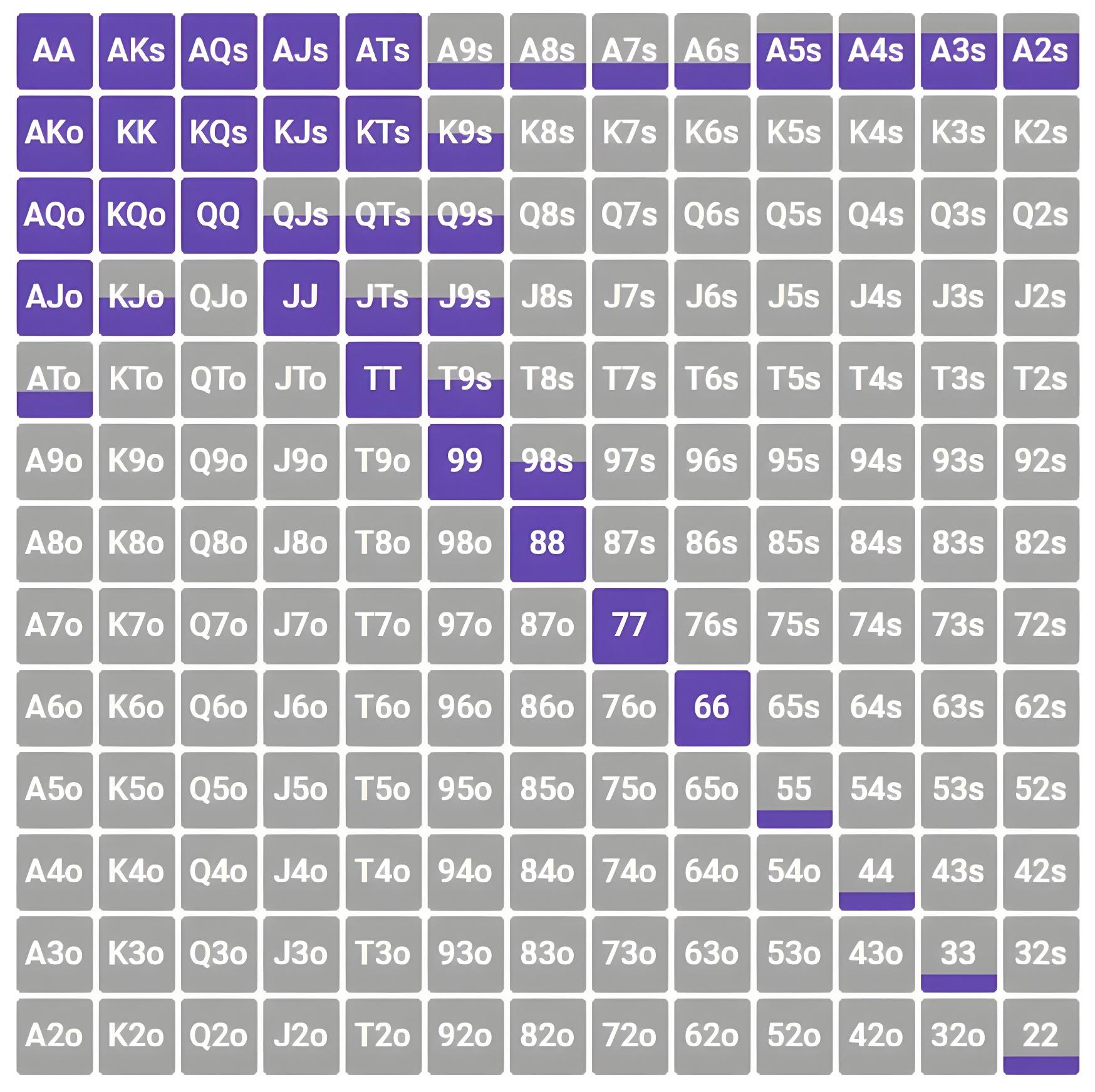 На представленном выше диапазоне вы можете увидеть предлагаемый рейндж открытия для позиций EP и EP+1 в глубине 60 бб+.