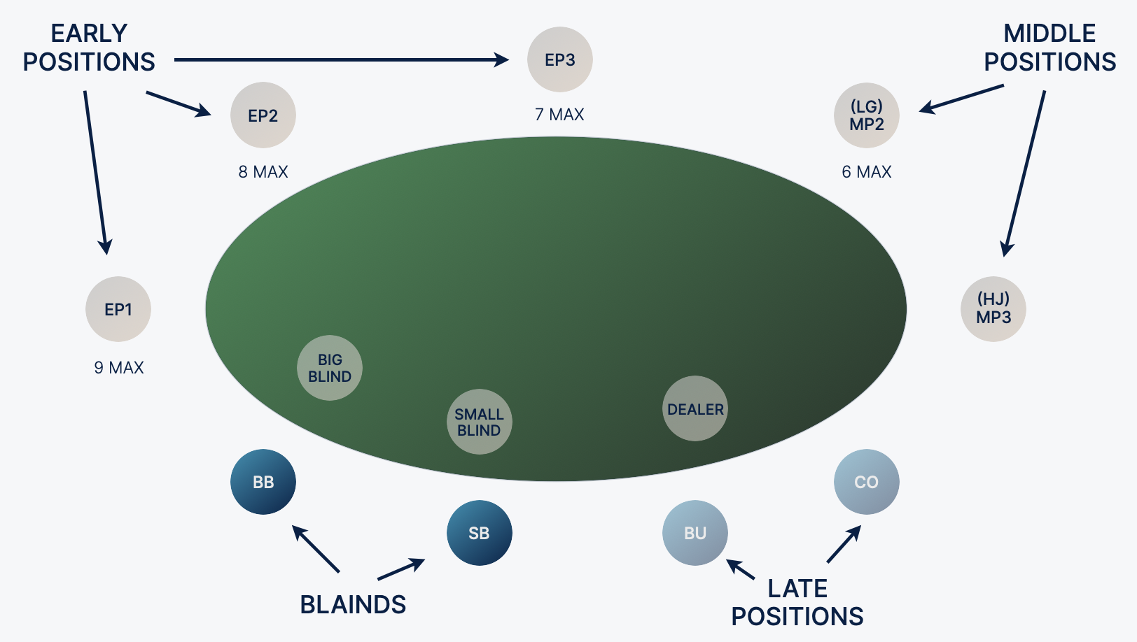 Ранняя - EP1 | EP2 | EP3 или MP1 | Два места сразу после блайндов |