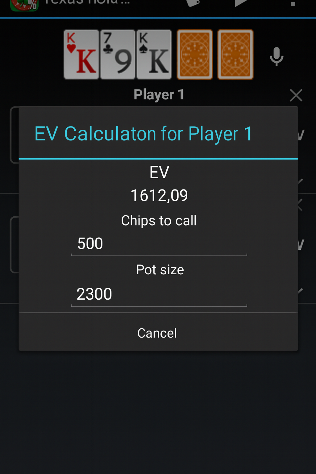 В онлайне есть много бесплатных эквити-калькуляторов, которые позволяют за несколько кликов мышки рассчитать шансы на победу конкретной руки или диапазона. Однако с телефона совершать эти действия не очень удобно. Покерный калькулятор — лучшее бесплатное приложение, которое есть в Google Play для расчёта эквити!