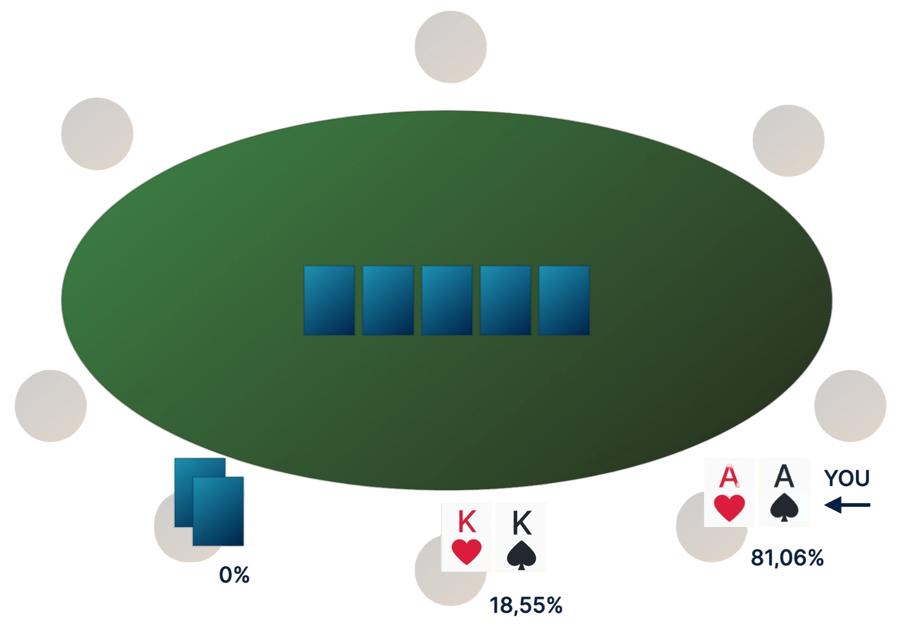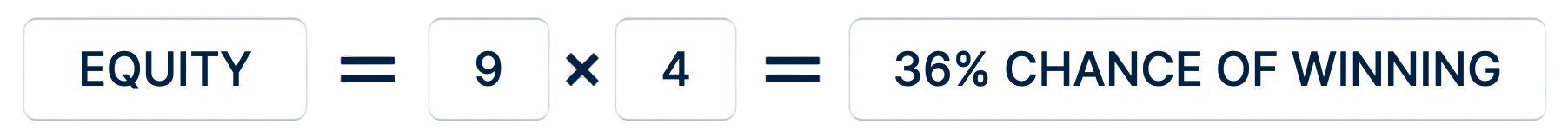 В любой раздаче у вас будет определенный шанс на победу: от нуля до ста процентов. Пока карты игроков закрыты, вы можете только предполагать диапазон оппонента и приблизительные шансы на победу в раздаче. Когда оба игрока выставляются в олл-ин, можно рассчитать точные проценты каждого.