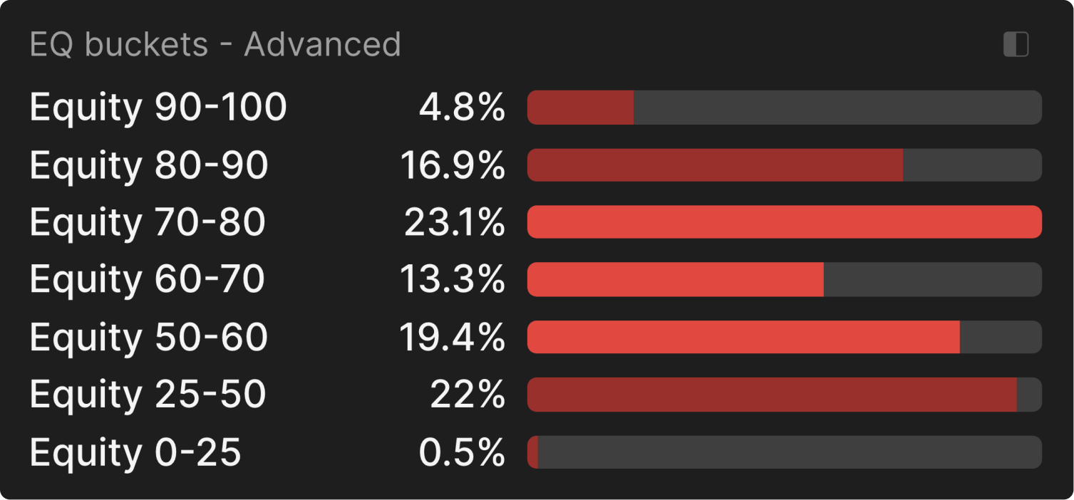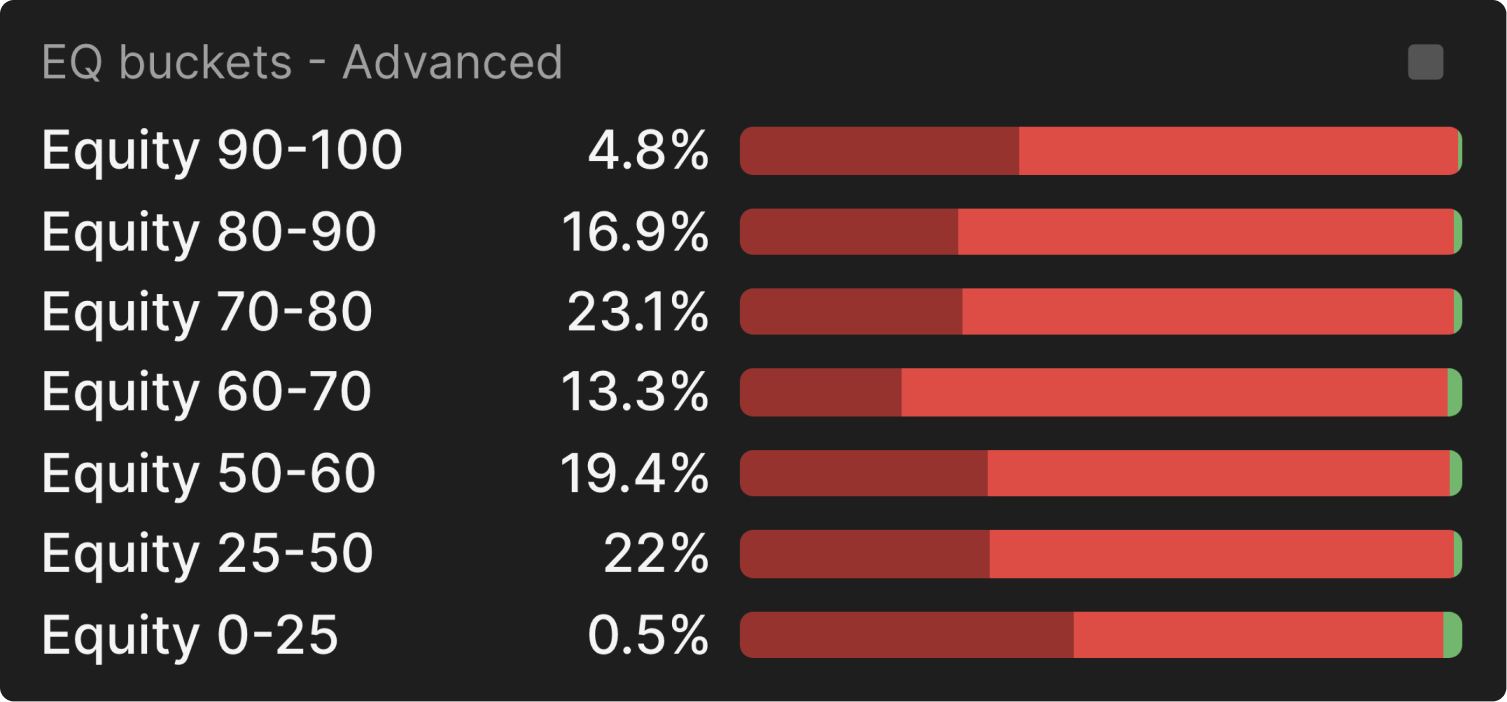 Мы можем подтвердить это, посмотрев на папки с эквити, где мы видим, что UTG чаще всего использует большой размер с самыми сильными и слабыми руками, а маленький размер в основном со средними руками: