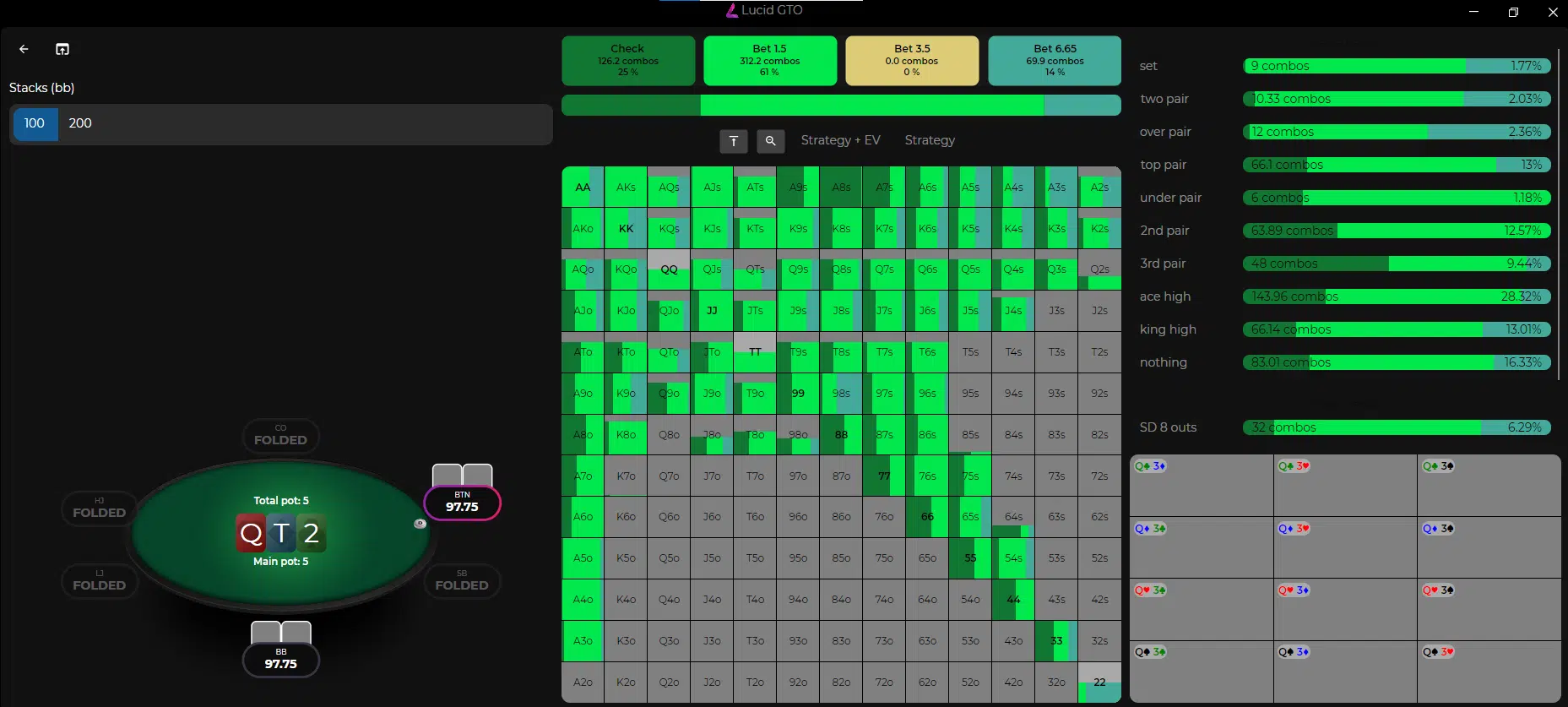 На этом снимке экрана вы можете увидеть стратегию для Баттона на флопе после чека от ББ: